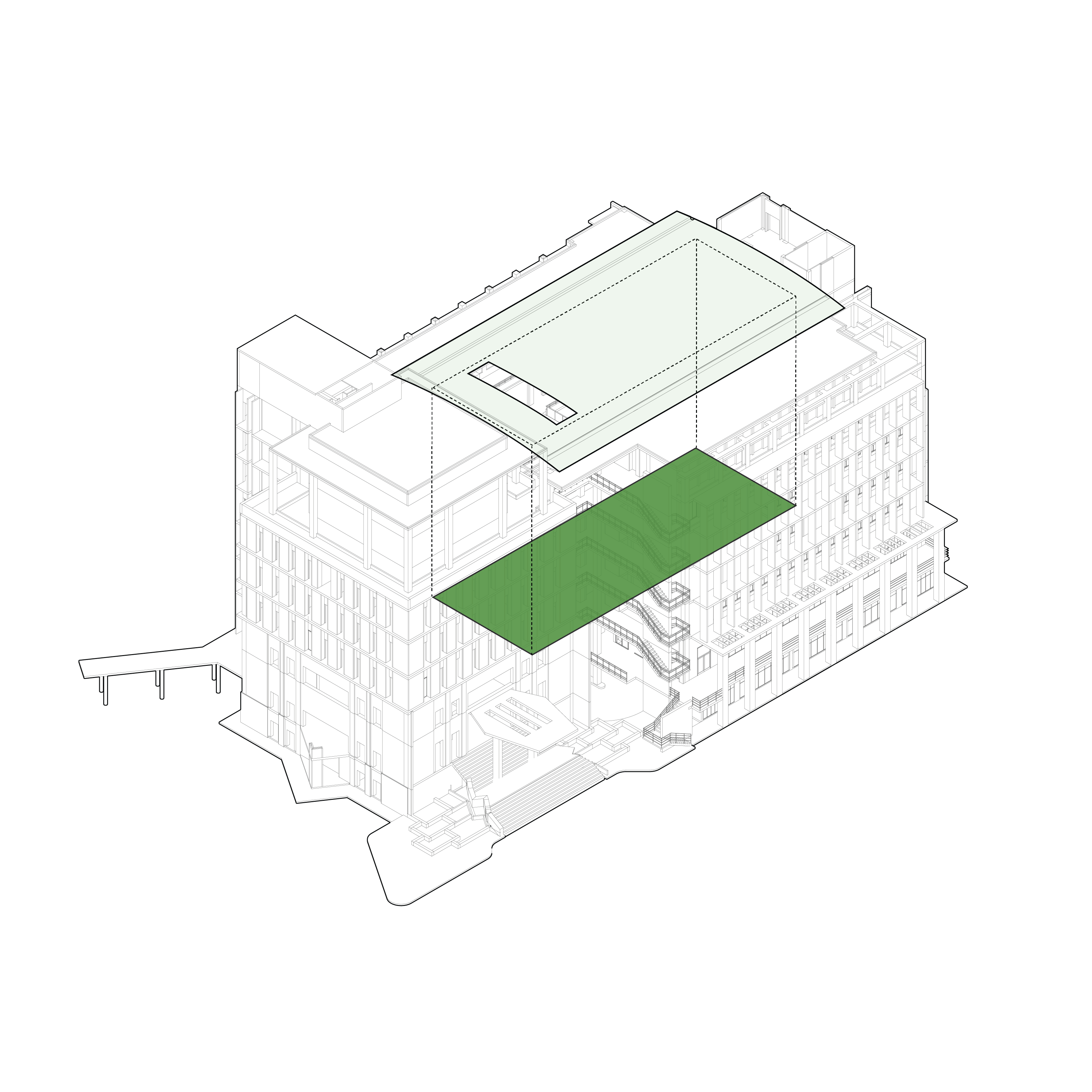 The courtyard is located in the center of the building and is open above, allowing for a large amount of daylight during the day. Lack of greenery and warm air rising affects vertical ventilation. However, green planters have been added in recent years. The courtyard is flexible for student activities and benefits surrounding areas with efficient cross ventilation. The central ELQU courtyard is covered by a roof with ventilation louvers and translucent panels for diffuse daylight. The courtyard is covered by plants and green planting areas along the railings of the corridors, making it comfortable for informal meetings. The MUIC courtyard is also located in the center of the building and has both covered and open areas. Cross and stack ventilation is limited due to extensive glass facades, but the courtyard is divided into several zones, including a water pool and relaxation areas. The terminal conditions are appropriate, and the place has a serene and inviting appearance.